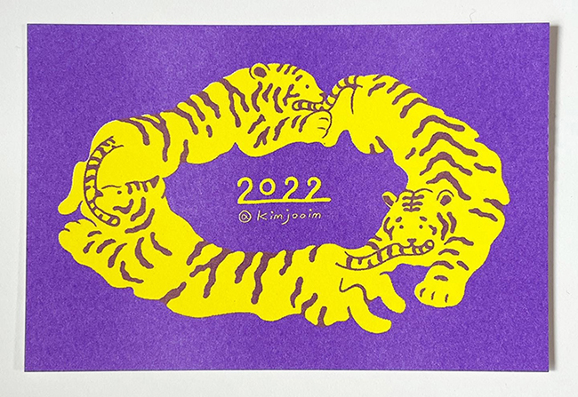 그리고 잘 구워진 빵에 호랑이 버터를 잔뜩 발라서 좋아하는 사람들과 맛있게 먹는 상상을 하며 연하장을 만들었습니다.