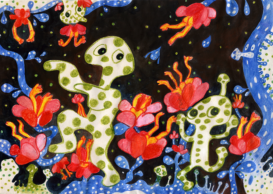 그곳에서는 포자를 흩날리거나 외계 생명체와 춤을 추기도 하고